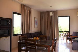 Otoczony ogrodami,  drzewami bananowymi, gajami owoców cytrusowych i kołyszącymi się palmami, obiekt oferuje spokojne, cypryjskie wakacje. Dzieci będą zachwycone placem zabaw, zaprojektowanym z myślą o ich rozrywce.